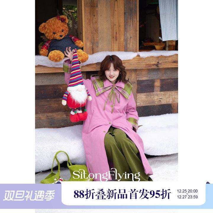 司童 海格蛋糕粉绿格纹风衣羽绒服女连帽90白鸭绒冬新款保暖御寒